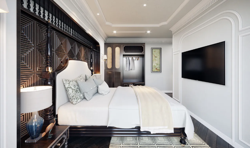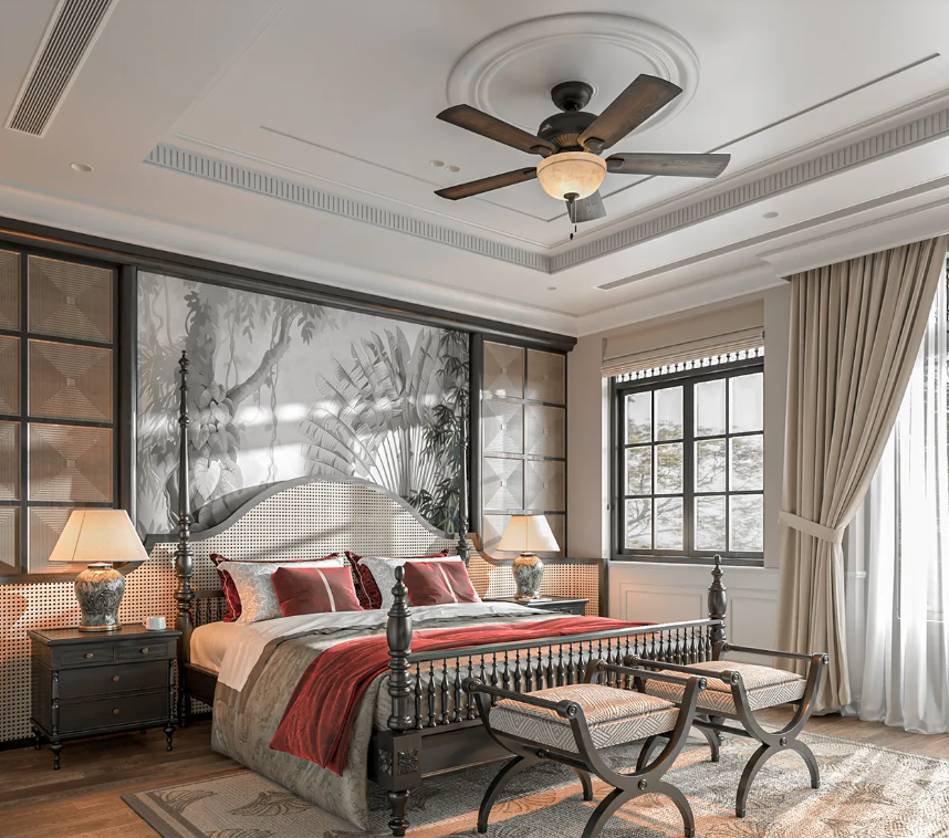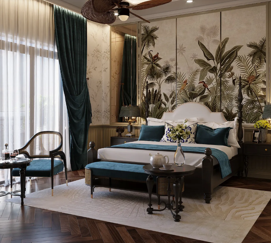Phong cách Indochine, hay còn gọi là phong cách Đông Dương, là sự kết hợp tinh tế giữa văn hóa Việt Nam, Pháp và Trung Quốc. Đây là một trong những xu hướng thiết kế nội thất rất được ưa chuộng hiện nay, đặc biệt trong không gian phòng ngủ. Bài viết này sẽ gợi ý cho bạn 28+ mẫu phòng ngủ phong cách Indochine đẹp và hiện đại nhất, giúp bạn có thêm ý tưởng cho không gian sống của mình.